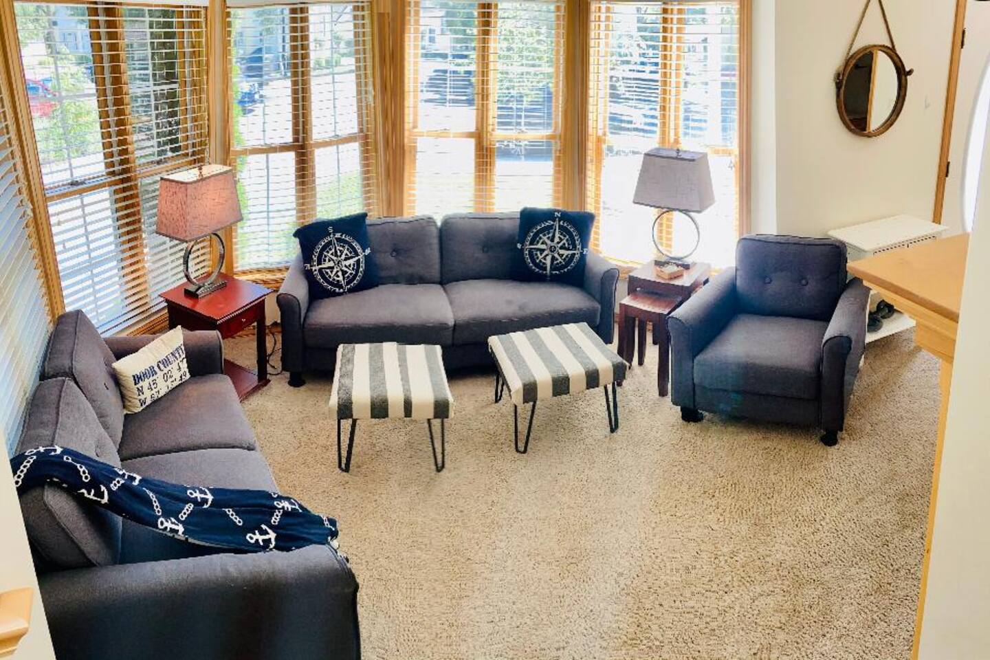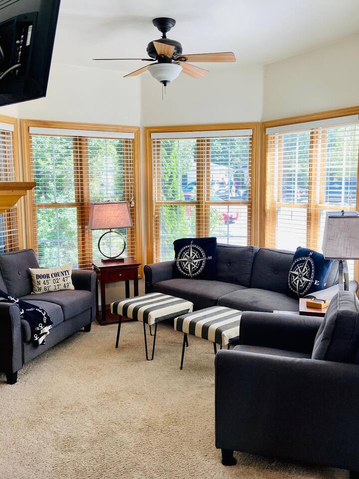 Unpack, relax, and enjoy the charm of the Fish Creek community located in the heart of Wisconsin’s Northern Door Peninsula. Located on Main Street, our condo is close to all that Fish Creek has to offer: restaurants | shopping | outdoor activities | festivals | boating - all within walking distance or a short drive. Park your car in our 2 reserved spaces and put on your hiking boots to explore Peninsula State Park just a few hundred yards away. Dress up or down for the wonderful restaurants where you can enjoy a dive-bar, a lobster boil, burgers or upscale dining. Early morning walks are fueled by a great coffee shop a brief jaunt down the street. Craving for some frozen custard? We have one of the best custard shops, fun for kids and adults, right around the corner. Want to go shopping? Buy high-end art or fun Door County memorabilia at one of the many shops Fish Creek has to offer for clothing, art, housewares and one of the best bathing suit boutiques EVER! Whether you’re coming with your family, kids, or a gathering with friends this 3 BR, 3.5BA tri-level turnkey condo has all you need to enjoy your vacation. It’s perfect for a weekend getaway, family vacation, or extended stay and has all you need to make wonderful memories with the ones you love. For those with young children, we also provide a and a high chair. Your dog(s) may come and enjoy the fun too for a fee of $300; max of two dogs. This cozy condo is air-conditioned for those in DC. We supply bathroom and kitchen towels, hairdryers, bedroom linens and dish / hand soap. Also included is a starter roll of paper towels as well as toilet paper (1 roll per bathroom). A full-size washer and dryer are available so you don’t have to over-pack. Come have fun with us! (Our family owns 2 condos across the street from each other. Please feel free to contact us with any questions!)